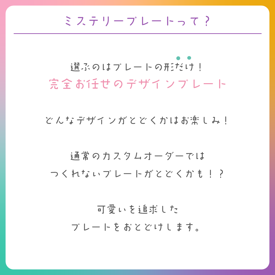 ミステリープレートは「すべてふちどりデザイン」でお届けします。